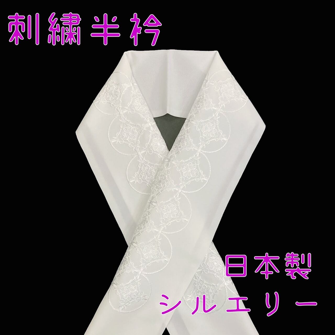 半衿 刺繍 華七宝 白 白地 シルエリー 新合繊 日本製 刺繍衿 和装小物 着物 成人式 卒業式 結婚式