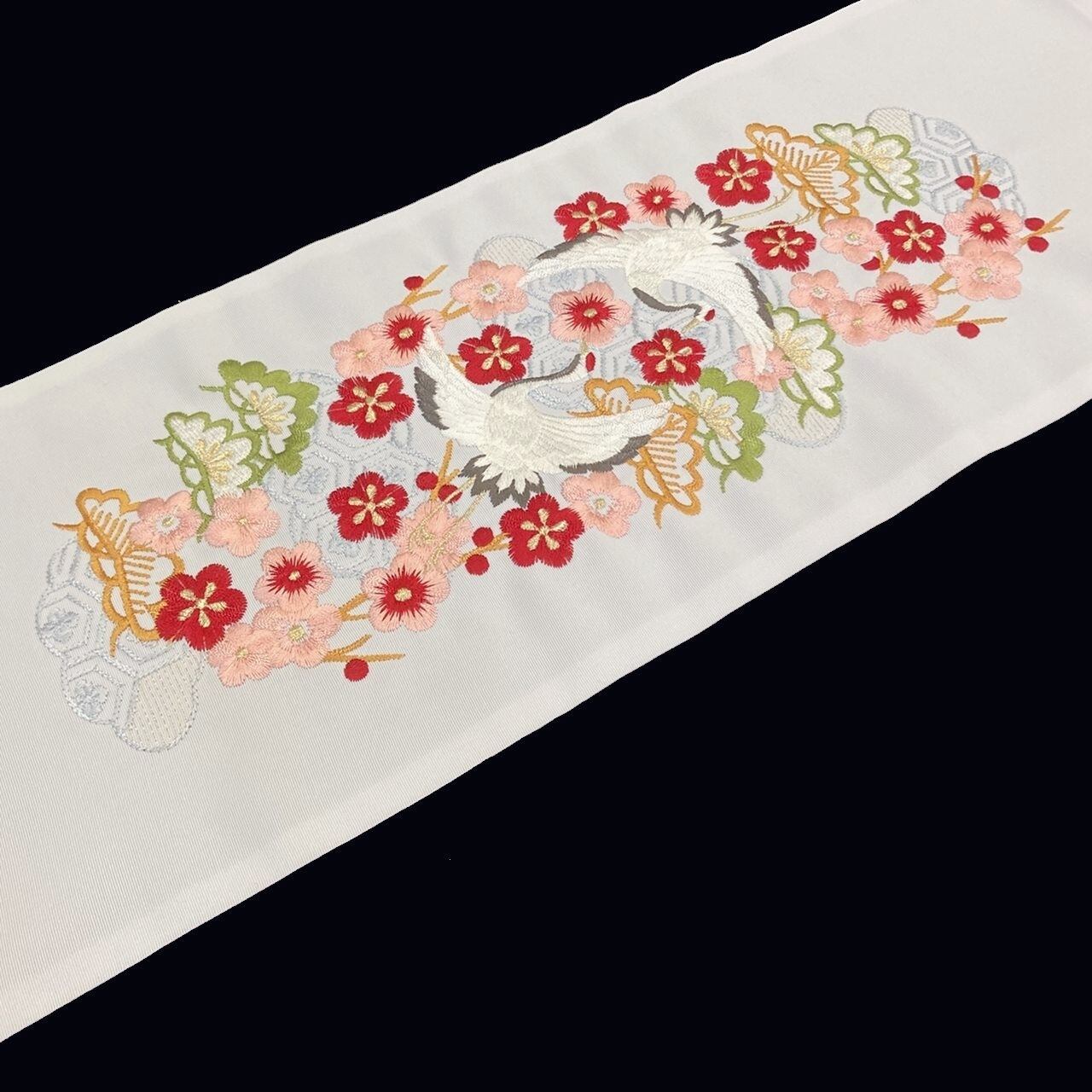 半衿 刺繍 雲に鶴 梅 松 白地 シルエリー 新合繊 日本製 刺繍衿 和装小物 着物 成人式 卒業式 結婚式