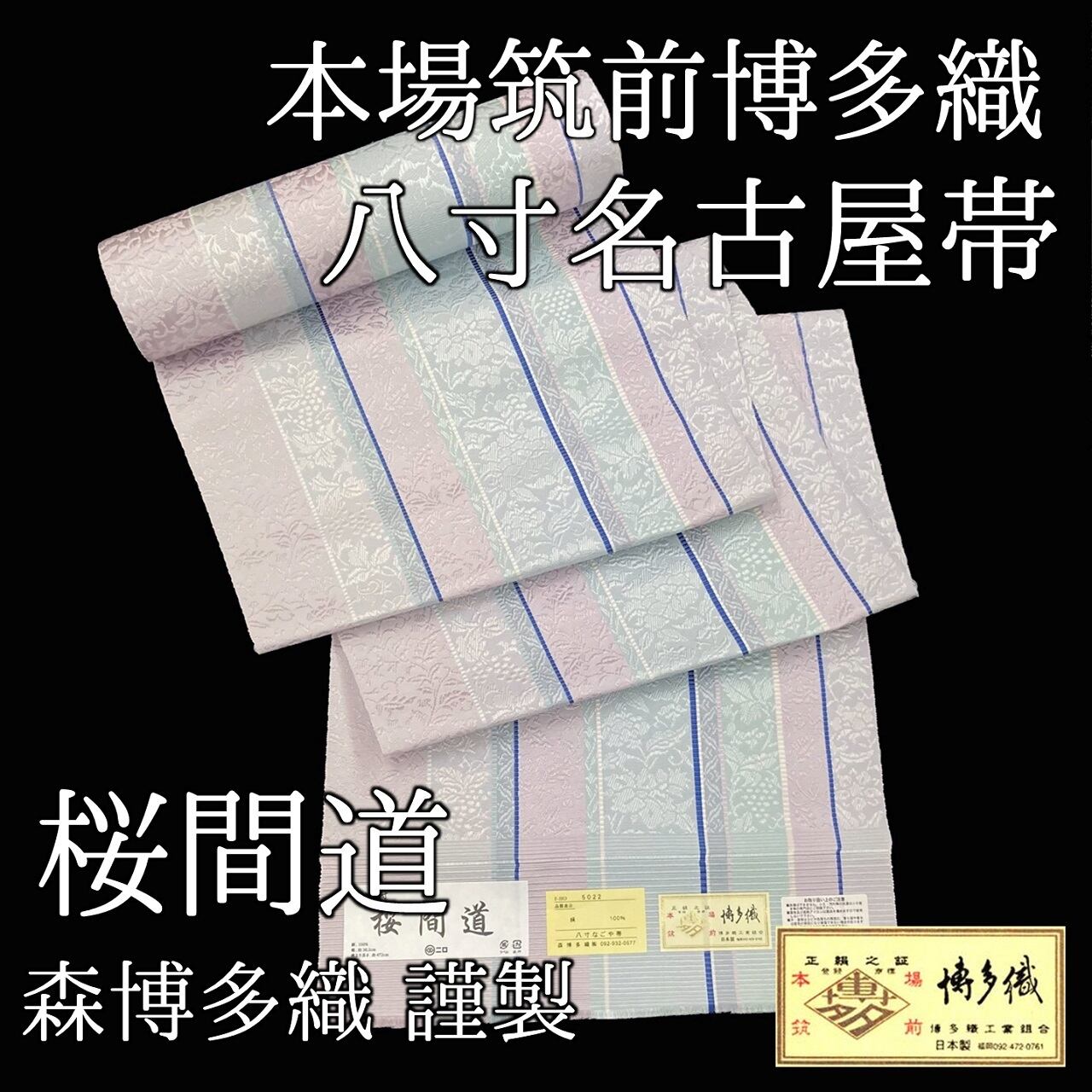 博多織 八寸帯 桜間道 森博多織 正絹 日本製 未仕立て 名古屋帯