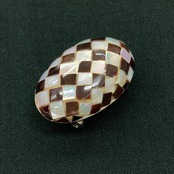 小ぶりな丸形の台に、白×黒の螺鈿を細かに切り嵌めています。