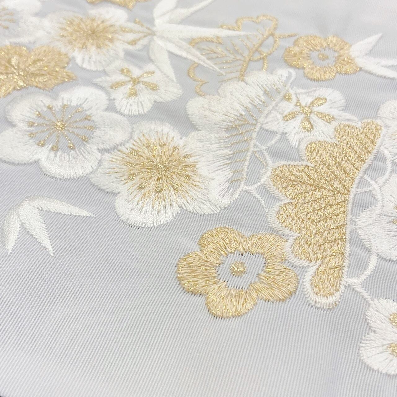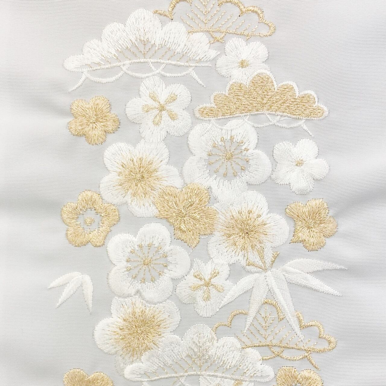 半衿 刺繍 松竹梅 金 白地 シルエリー 新合繊 日本製 刺繍衿 和装小物 着物 成人式 卒業式 結婚式