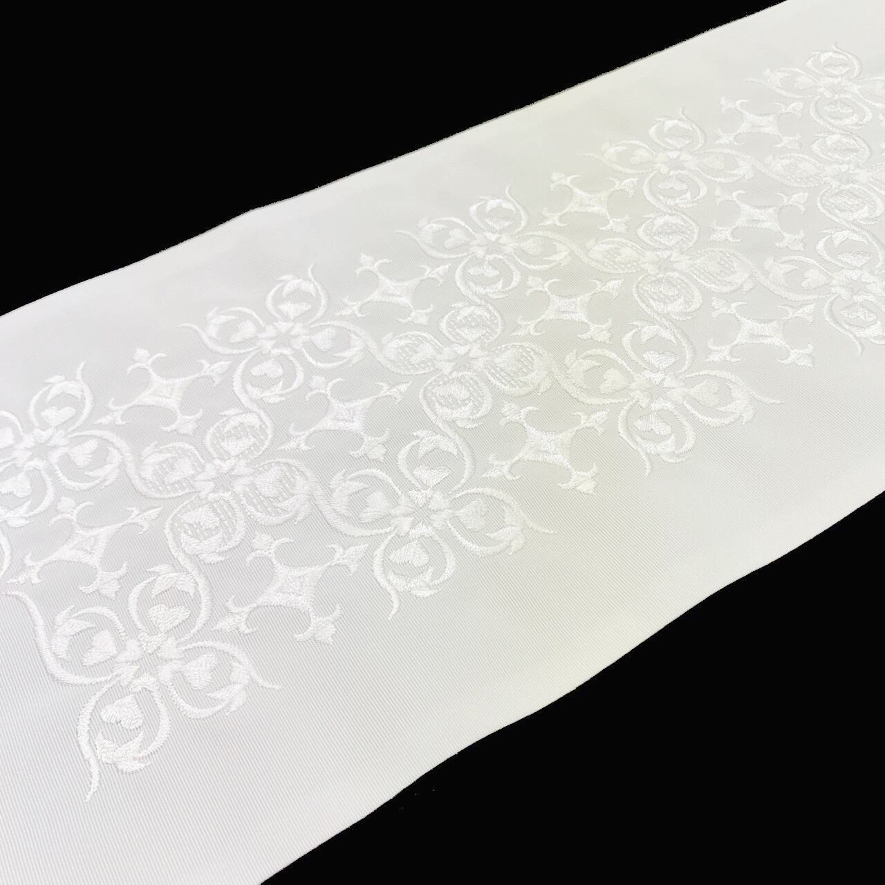 半衿 刺繍 七宝 アラベスク 白刺繍 白地 シルエリー 新合繊 日本製 刺繍衿 和装小物 着物 成人式 卒業式 結婚式