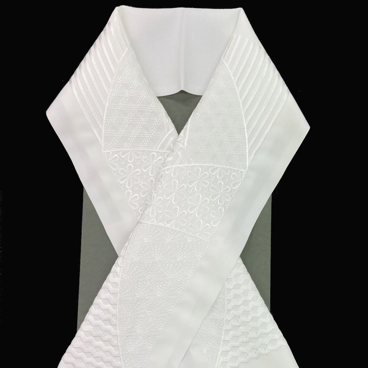半衿 刺繍 吉祥小紋 切り嵌め 白刺繍 白地 シルエリー 新合繊 日本製 刺繍衿 和装小物 着物 成人式 卒業式 結婚式